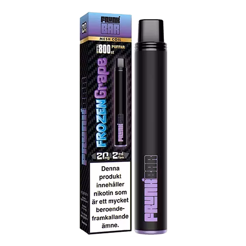 Frozen Grape – Frunk Bar levererar en djup, söt och fruktig druvsmak som kombineras med en tydlig och uppfriskande frozen-effekt. Smaken är rund, intensiv och samtidigt krispigt kall – perfekt för dig som gillar klassiska druvsmaker med rejäl kyla. Frunk Bar är framtagen för stabil prestanda och konsekvent smak från första till sista puffen.