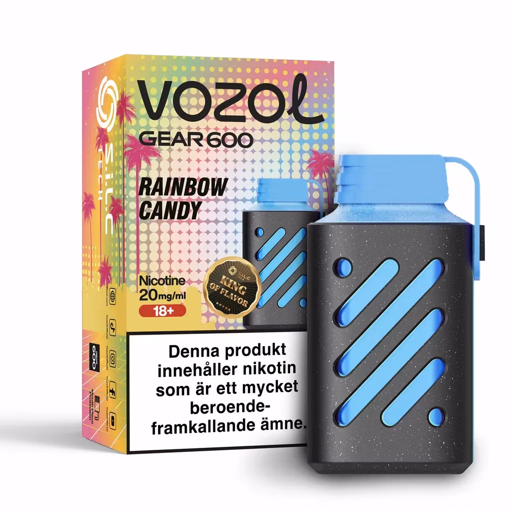 Rainbow Candy – Vozol Gear levererar en intensiv och nostalgisk godissmak som påminner om klassiskt blandgodis i regnbågens alla färger. Smaken är tydligt söt, fruktig och lekfull med flera lager av fruktiga toner som avlöser varandra. En perfekt smak för dig som gillar godisprofiler med maximal sötma och långvarig smak. Vozol Gear-serien är framtagen för hög prestanda, stabil ångproduktion och konsekvent smak från första till sista puffen.
