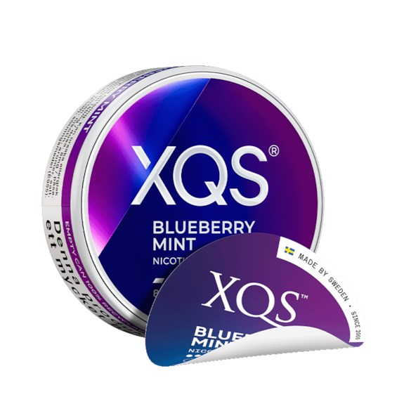 XQS Blueberry Mint 8mg kombinerar söt blåbär med frisk mint. Med 8 mg nikotin per portion får du en balanserad och sval upplevelse i slim-format.
