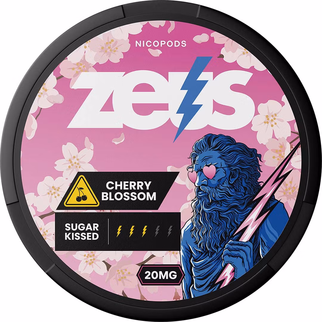 Cherry Blossom – ZEUS 20 mg nikotinportioner kombinerar en söt och fyllig körsbärssmak med en mjuk, lätt blommig underton. Smaken är balanserad och aromatisk med rund sötma och fräsch karaktär. Med 20 mg nikotin per portion passar denna variant erfarna användare som söker en starkare nikotinkänsla i ett diskret och tobaksfritt format.