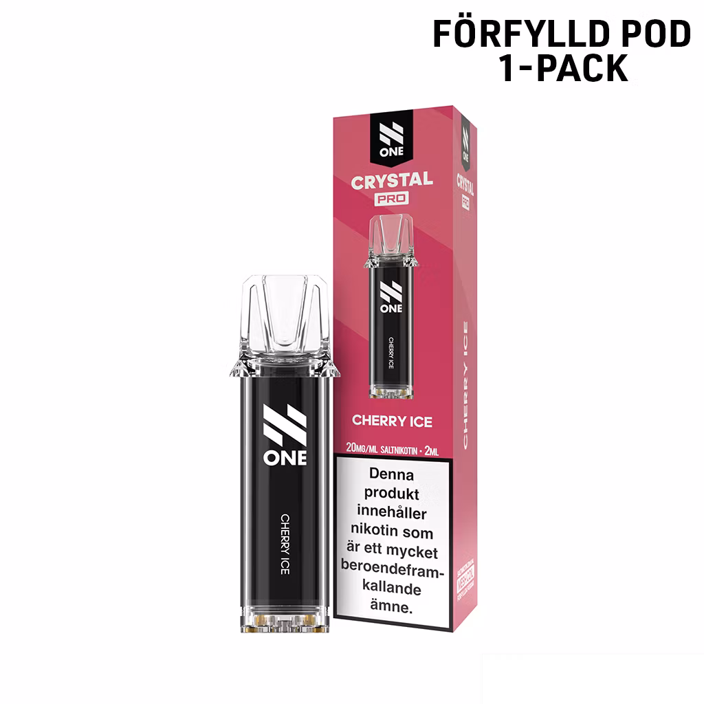 N One Crystal PRO Pod – Cherry Ice 20 mg är en förfylld pod med 20 mg nikotinsalt som kombinerar djup och söt körsbärssmak med en frisk, kylande iston. Smaken är intensiv och fruktig med ett svalt avslut som ger en uppfriskande och balanserad vape-upplevelse. Nikotinsaltet ger en mjuk halskänsla och snabb nikotineffekt, medan mesh coil-tekniken säkerställer jämn och konsekvent smakleverans från första till sista puffen.